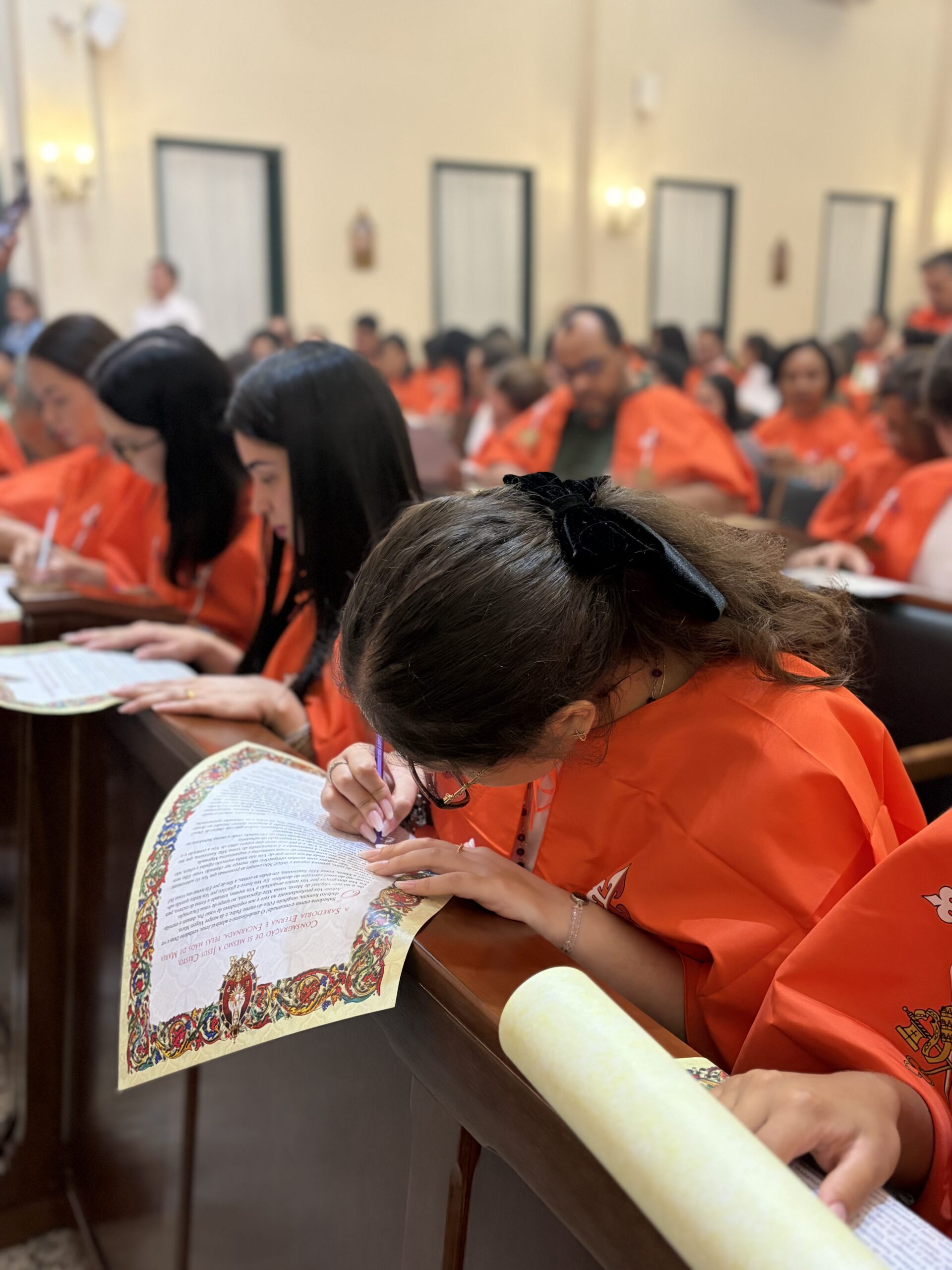 La ceremonia, celebrada a las 17:00 horas, fue presidida por el Pbro. Celio Casale, EP. La liturgia, se vivió con gran recogimiento cuando los fieles, tras una dedicada preparación, proclamaron su fe. Este gesto de piedad filial representa un compromiso personal y un testimonio de almas que buscan la santidad bajo la protección del Inmaculado Corazón de María.