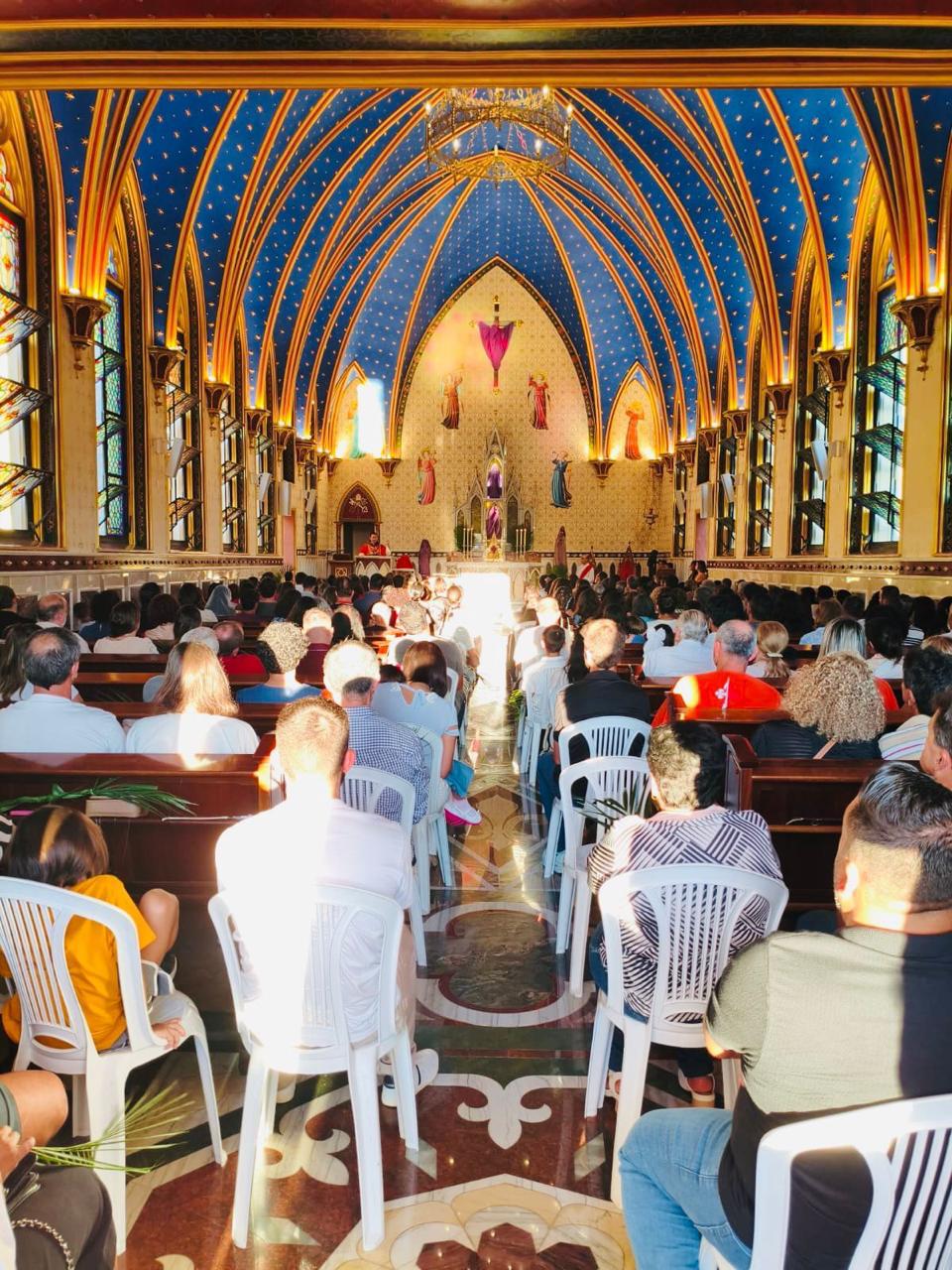 La ceremonia fue presidida por el Padre Cristian Bitencourt, EP, y reunió a cerca de 300 personas, quienes renovaron su entrega espiritual siguiendo el método de San Luis María Grignion de Montfort.